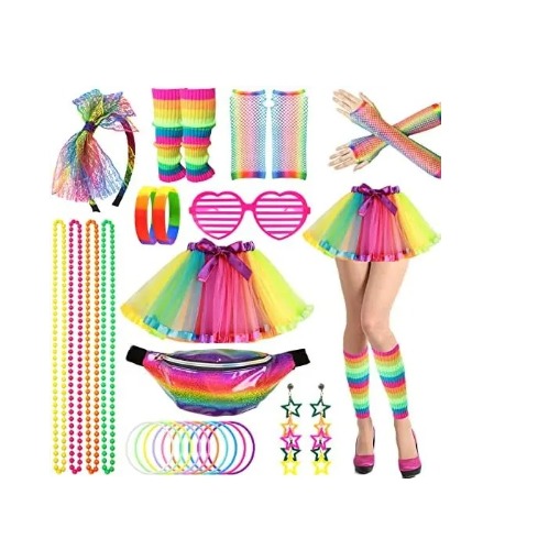 Cet ensemble est l’allié rêvé pour une soirée à thème années 80, un enterrement de vie de jeune fille, un festival fluo ou même un anniversaire nostalgie. Il permet de créer un look complet sans rien avoir à chercher en plus et il garantit une cohérence stylistique irréprochable.