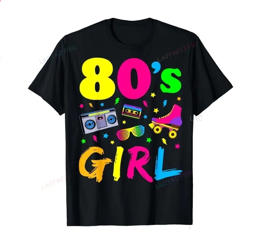 Les années 80 n’ont jamais demandé la permission. Encore moins à celles qui les ont vécues avec fracas. Ce t-shirt, c’est une déclaration d’indépendance à l’ancienne : joyeuse, bruyante, pleine de couleurs. Il parle à toutes celles qui ont dansé sur un lino craquant, qui ont fait des chorégraphies devant la glace avec des rubans fluo autour des poignets, qui ont enregistré leurs chansons préférées à la radio, doigt sur le bouton “Rec”. Il ne cherche pas à flatter la nostalgie : il la réactive, il l’embrasse et surtout il l’honore.